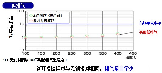 SIAIF憑借在鋼球上采用高溫下耐久性優(yōu)越的固體潤滑鍍膜技術(shù),開發(fā)了與原來的無潤滑軸承同樣的低排氣特性,但壽命可延長至其8倍的固體潤滑鍍膜軸承。